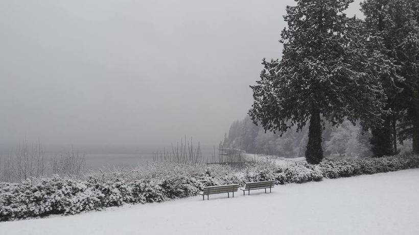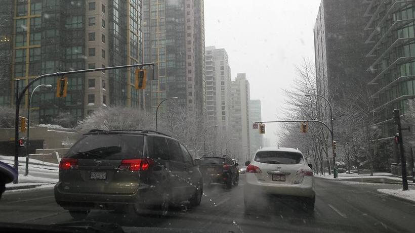 Мокрый снег при +1 - обычная зима в Ванкувере. Фото Лариса Свиридова