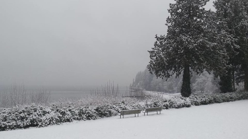 Раз в три-четыре года в Ванкувер приходит настоящая зима. Настоящая зима — это когда столбик термометра опускается ниже нуля, и снег не тает больше суток. Чаще всего осадки представляют собой мокрый снег, который превращается в дождь, еще не касаясь земли. Не удивляйтесь, когда увидите ванкуверцев в декабре с зонтом в руках — это норма.