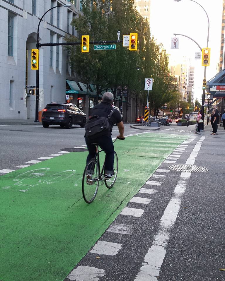 Ванкувер любит велосипедистов и создает для них все условия. Автобусы оснащены специальными подставками для велосипедов, в вагонах метро под них отведены целые площадки. Город гордится своими более чем 300 километров специальных дорожек, знаков, светофоров, стоянок и прочей инфраструктурой.