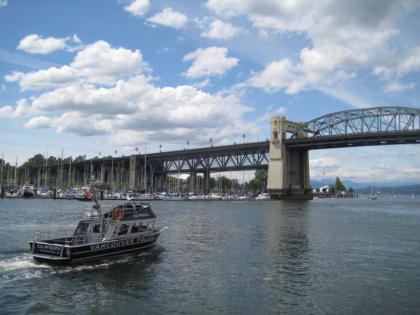 Мост Буррард. Катерок полиции. Ванкувер. Фото Лариса Свиридова