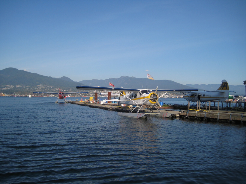 Экскурсионная прогулка на самолете. Ванкувер необыкновенно красив с высоты птичьего полета. Чтобы насладиться этим видом, стоит потратиться на экскурсию на прогулочном самолете. Целый ряд частных фирм предлагает большой выбор разных туров от 90 USD (120 CAD) за человека. Все экскурсии различаются по длительности, по расстоянию от города, по живописности пейзажа, да и от самого самолета. Выберите себе любой тур на вкус, просто погуляв по берегу Coal Harbour, что расположена в Даунтауне Ванкувера.Эксурсионный самолетик в Coal Harbour. Фото Лариса Свиридова