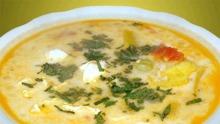 Карбонара – суп с рисом и нарезанными кубиками овощами, в то время как для чарквикана их измельчают до состояния пюре. Подают его с варёными яйцами.