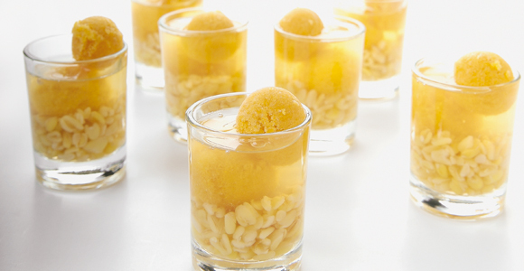 Холодный «сок» из сушёных персиков. Воду и сахар заливают вместе с восстановленными, выглядящими как зёрна ячменя, персиками. Этот сладкий освежающий напиток очень популярен.