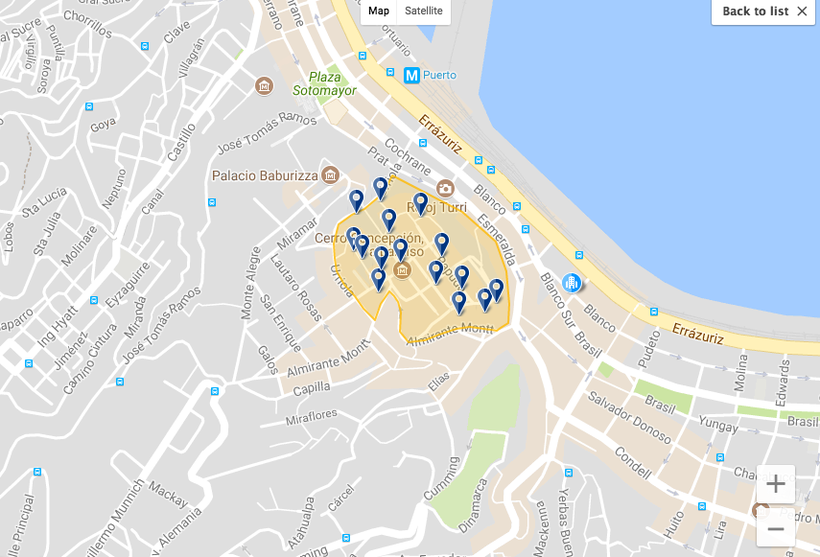 Если у вас достаточно много дней в городе, советую поступить следующим образом: один день изучать один холм. Всего их в городе 42, но главных два: Cerro Concepcion и Cerro Alegre. Начать нужно с них! Обязательно отведите несколько часов на портовую часть, там совершенно особое чувство свободы.