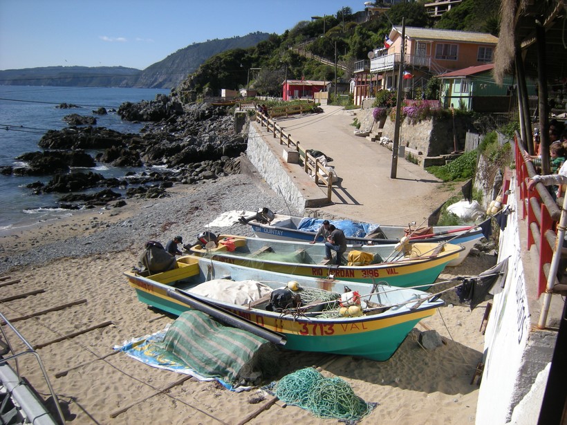 - Кинтай (Quintay) — один из самых популярных, комфортных и благоустроенных пляжей. Я удивилась, когда узнала, что еще несколько десятилетий назад именно здесь вели активный китобойный промысел. Сегодня побережье великолепно оборудовано, на пляже находится высококлассный дайвинг-центр и замечательные рестораны. Дайверов эти места привлекают не случайно. Дело в том, что уже много лет вблизи побережья Кинтай на дне покоится старинное рыбацкое судно.