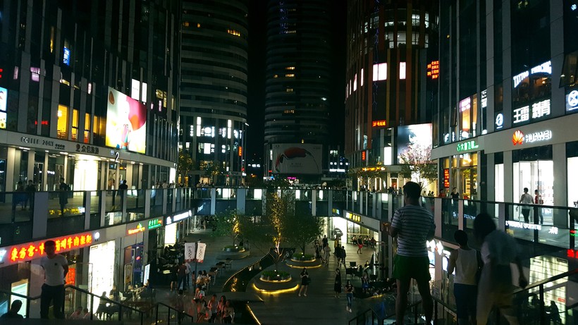 Все командировочные и деловые люди обычно останавливаются в районе Гуомао (или CBD). Я работала на Гуомао целый год, и каждый день по дороге на работу лицезрела высочайшие отели города, такие как Sofitel, Rosewood, Kerry Hotel, Shangri-La (100-230 USD за ночь) и т.д. Выглядит Гумао очень респектабельно, особенно вечером.