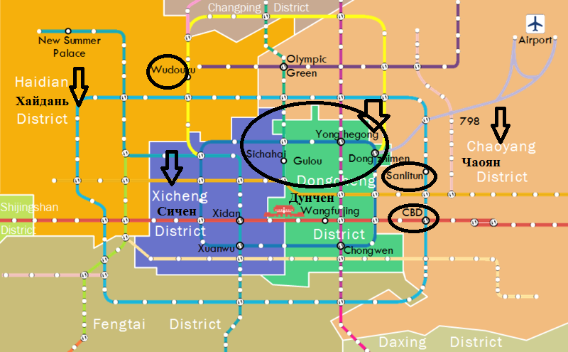 А вот и все районы Пекина. Я также отметила места, где лучше всего остановиться, если вы планируете исследовать этот прекрасный город. Здесь указаны практически все районы города, за исключением Тунчжоу, который располагается на востоке Пекина. Там, к слову, строят студию Парамаунт, и в скором времени туда переедет правительство, поэтому кто знает, может, через пару лет именно этот район будет самым популярным.