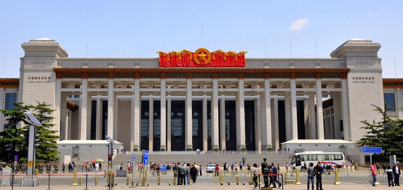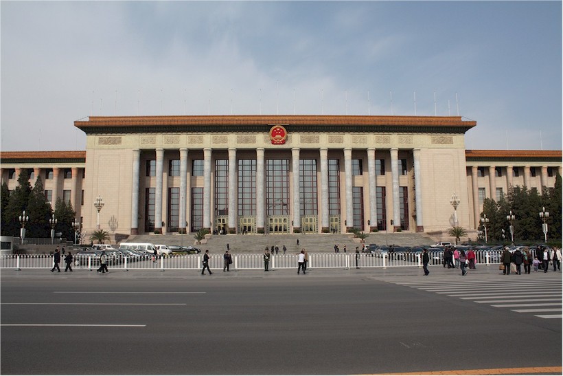 С запада располагается Дом народных собраний. Туда можно войти, естественно, приобретя билет, и посмотреть в каком месте заседает китайский парламент.