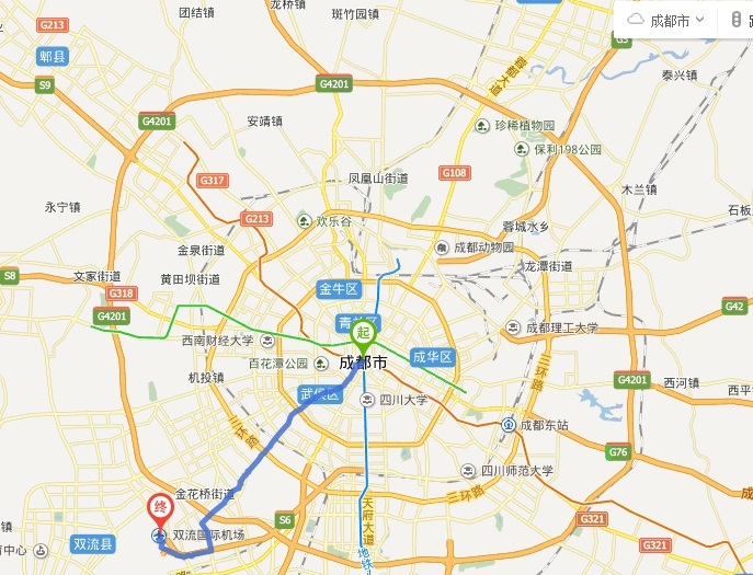 Самый удобный способ добраться в Чэнду – воспользоваться самолетом. Ближайший международный аэропорт Шуанлю (成都双流国际机场) находится на расстоянии 20 км от города и входит в десятку крупнейших аэропортов Китая.