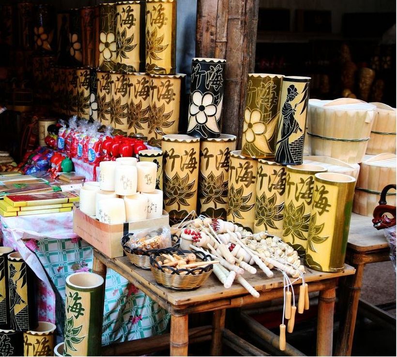 Провинция Сычуань богата бамбуковыми лесами, которые так любят мишки панды. Неудивительно, что популярным тут стали сувениры из бамбука. В качестве подарка себе или близким можно привезти шкатулки, светильники, корзины, кухонные и письменные принадлежности, изготовленные из этого материала, продаются они как в дорогих магазинах, так и на рынках.