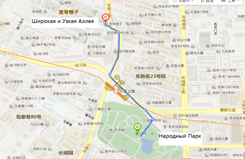 - Широкая и Узкая Аллея ( 宽窄巷子kuānzhǎi xiàngzi);
