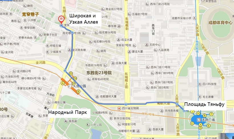 Эта улица находится недалеко от площади 天府广场. На ней сосредоточено большое количество шоппинг моллов, которые привлекают как местных, так и приезжих. Там можно купить брендовую косметику, обувь, одежду и украшения. Но как по мне, достаточно будет похода на улицу Chunxi, ведь и выбор там больше, и особый колорит присутствует. Но если заходите сходить, то карта ниже вам в помощь, пешком от площади это займет минут 20.