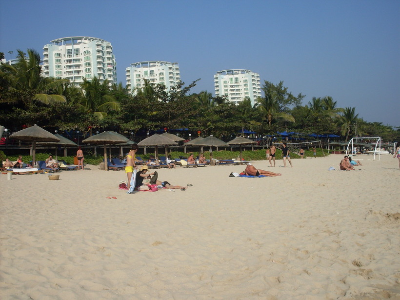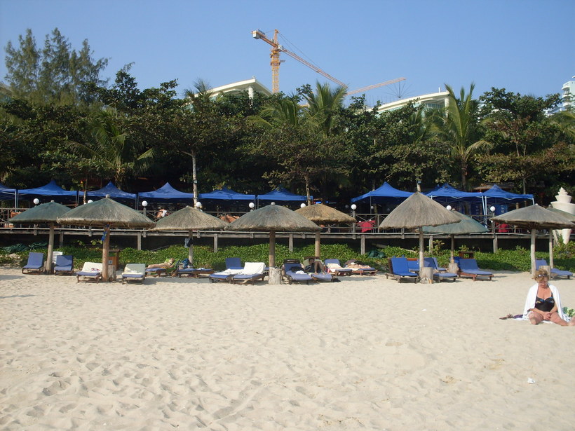Пляж в бухте Дадунхай, как и везде острове Хайнань, муниципальный. Между отелем и правительством есть что-то похожее на договор аренды, по которому часть земли на пляже передается в пользование отелю. Но абсолютно любой, будь то местный житель или постоялец соседнего отеля, может прийти на пляж вашего отеля и расположиться рядом с вами. Никакого деления на территорию отеля и прочие на пляже нет. Для удобства туристов лежаки и зонты отелей отличаются лишь цветом.