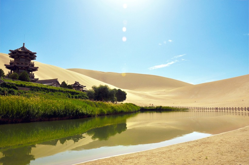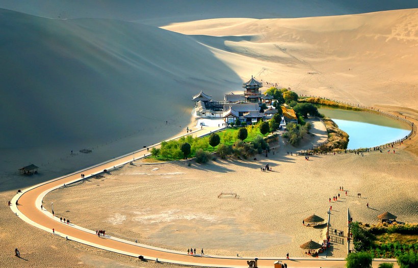 Оазис с озером Полумесяца, расположенный в окружении песчаных дюн, — одна из жемчужин Дуньхуана, провинции Ганьсу, а возможно, и всего Китая.