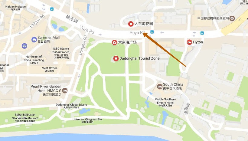 Адрес: No 668 Jiefang 3rd Road. Это в паре шагов от пешеходной улицы. Если едете из другой части Саньи или Дадунхая – доберетесь на автобусах 2 и 4.