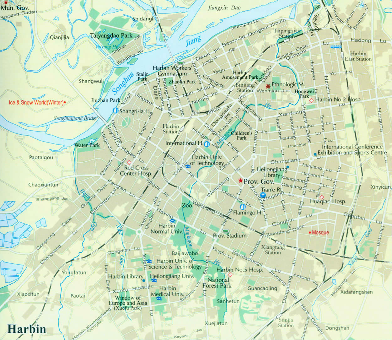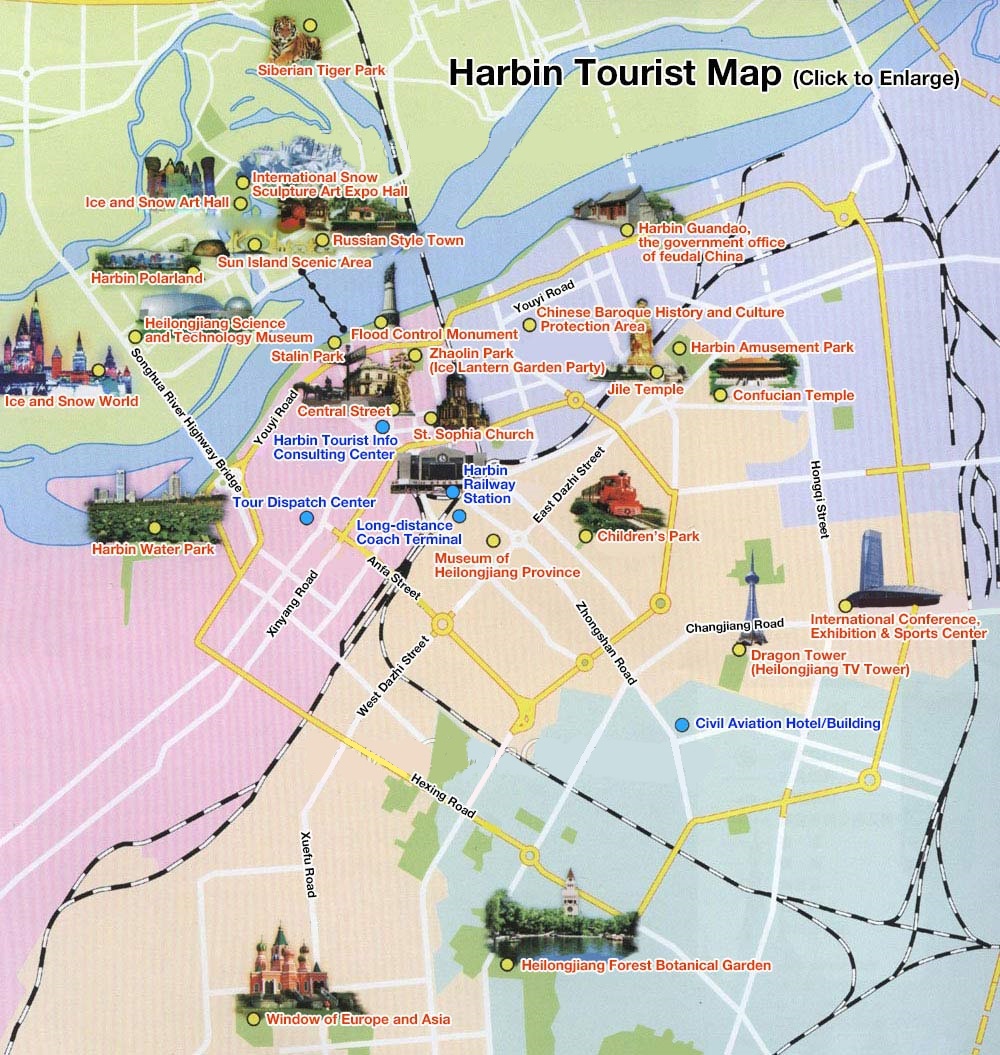 В списке популярных карт можно посмотреть карту Харбина на русском с достопримечательностями. Для скачивания карт достаточно щелкнуть мышкой по изображению.