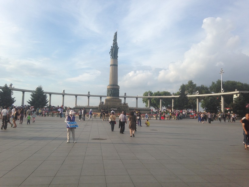 Если вы пришли на Арбат, можно охватить еще несколько достопримечательностей. Дойдя до конца улицы, вы выйдете на набережную реки Сунгари. От набережной можно пойти направо, но на той стороне ничего интересного нет, разве что красивый железнодорожный мост, на который можно подняться.