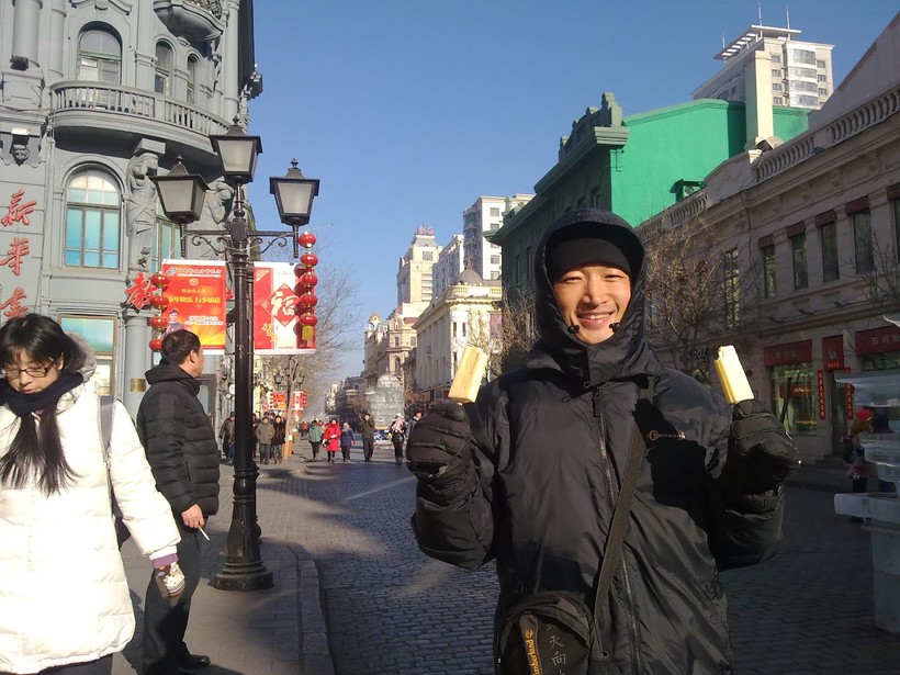 А, кстати, забыла про мастхэв Арбата – мороженое марки Modern, очередь за которым не прекращается даже зимой. Поэтому не удивляйтесь, если при морозе минус 30 увидите китайцев с мороженым в руках. Это нормально. Такую дикую популярность десерта объяснить сложно, так как сама пробовала его и ничего особо вкусного не заметила. Но для харбинцев это прям святое – прийти на Арбат и полакомиться мороженым. Стоит это удовольствие всего юаня три или около того, это чуть меньше 0.5 евро.