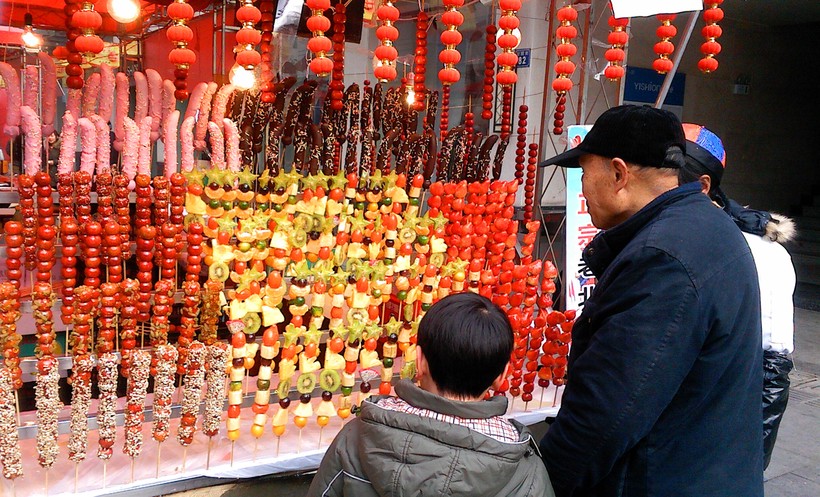 Гуляя по Арбату зимой, обязательно попробуйте тханхулу – яблоки, брусника или клубника в сахарной карамели на палочке.