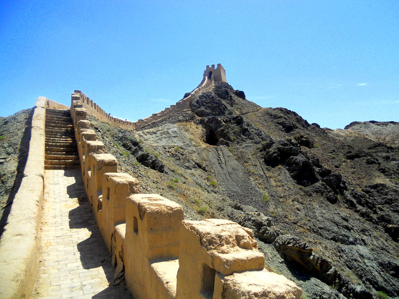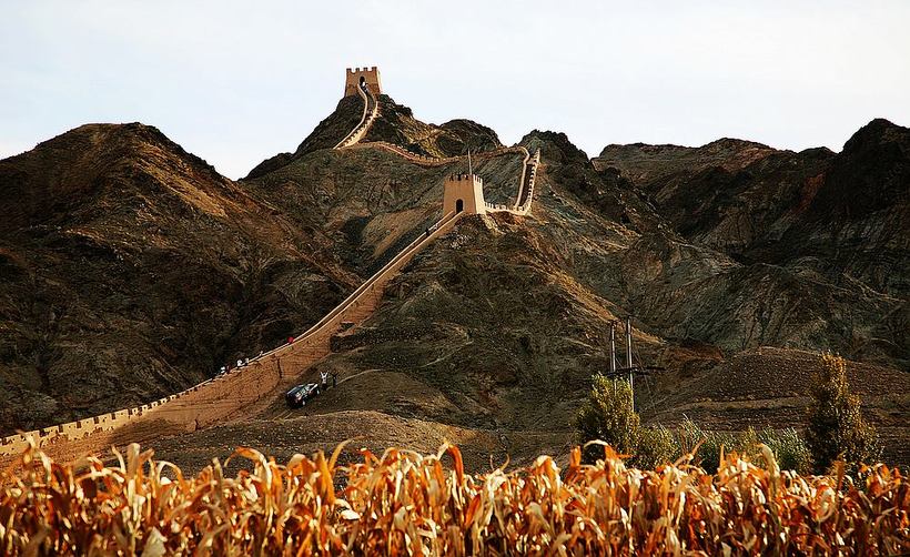 Стена здесь совсем не похожа на ту, что в Пекине. Она построена не из камня, а из глины, соломы и песка. Кажется, вот-вот рассыпется от дуновения ветра или прикосновения. Да и сам пейзаж отличается разительно. Окружающее больше напоминает какую-то инопланетную пустыню: черные горы, безжизненная земля, минимум растительности и людей. Но виды все равно захватывают.