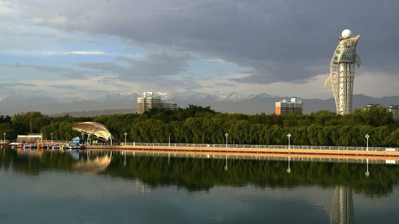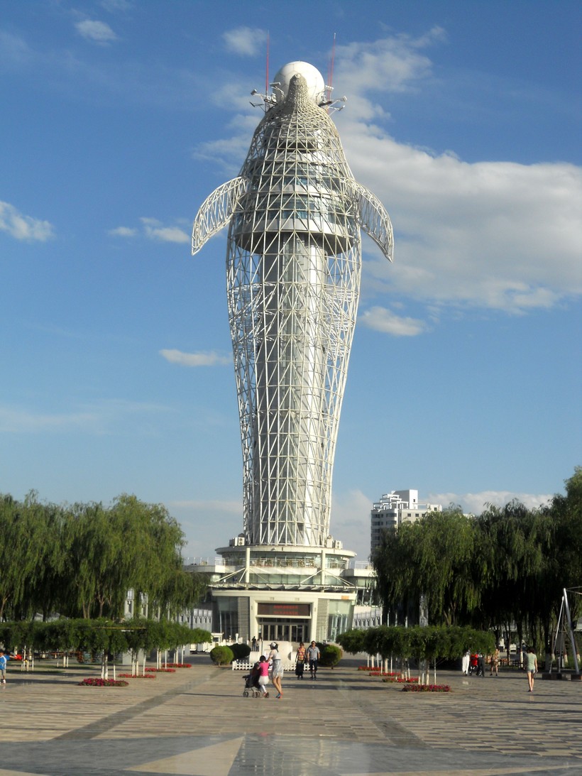 В одном из парков в центре города китайцы построили метеорологическую вышку в виде дельфина высотой в 99 метров.