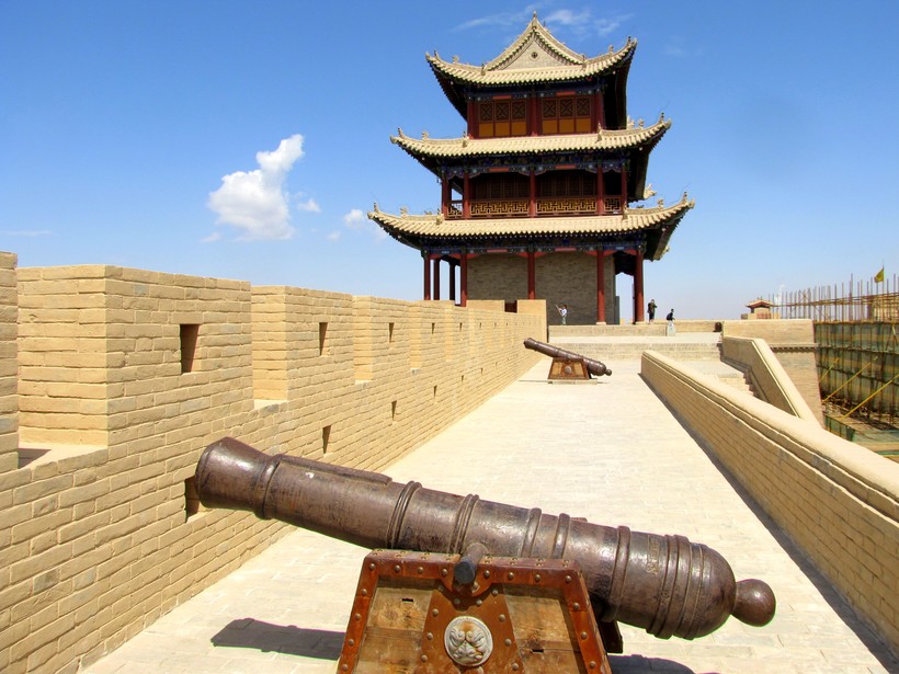 Самая главная достопримечательность этого города — древний оборонительный форт, известный как западная застава Великой Китайской стены. На момент правления династии Минь (1368–1644) эта застава была крайней западной точкой страны и служила воротами в Китай. Она была надежным оплотом для путешественников и купцов, которые вели свои караваны по Шелковому пути, защищала границы китайского государства от внешних вторжений.