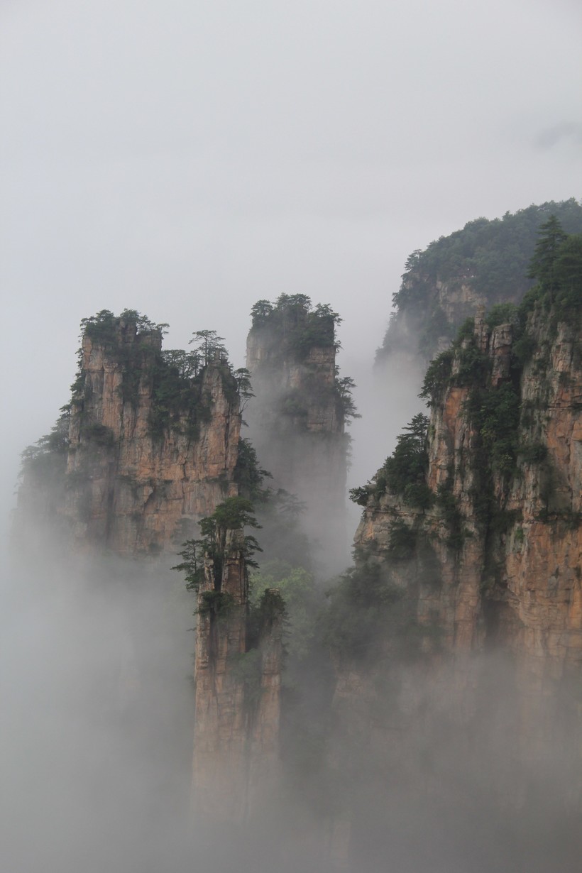 Весной в Чжанцзяцзе начинается период дождей, который длится с марта по июнь. Конечно, неприятно осматривать горы, когда с неба непрестанно капает, но именно в это время туманы застилают долину и многие едут сюда, чтобы насладиться эффектом «парящих вершин». Когда туман скрывает основание гор, и правда создается впечатление, что горы висят в воздухе. Но тут уже как повезет. Может и вовсе ничего не удастся разглядеть за пеленой тумана.