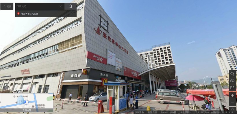 Поскольку я приехала в Чжанцзяцье на поезде, я легко нашла автостанцию. Если пройти до конца привокзальной площади и стать спиной к зданию вокзала, то по левую сторону будет виден MacDonald’s и прямо возле него расположен вход на станцию. На скриншоте можно посмотреть, как выглядит нужное здание.