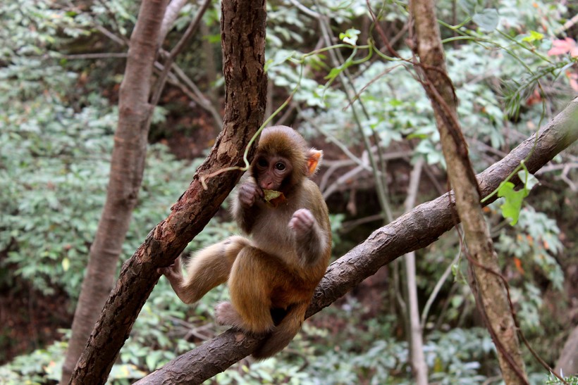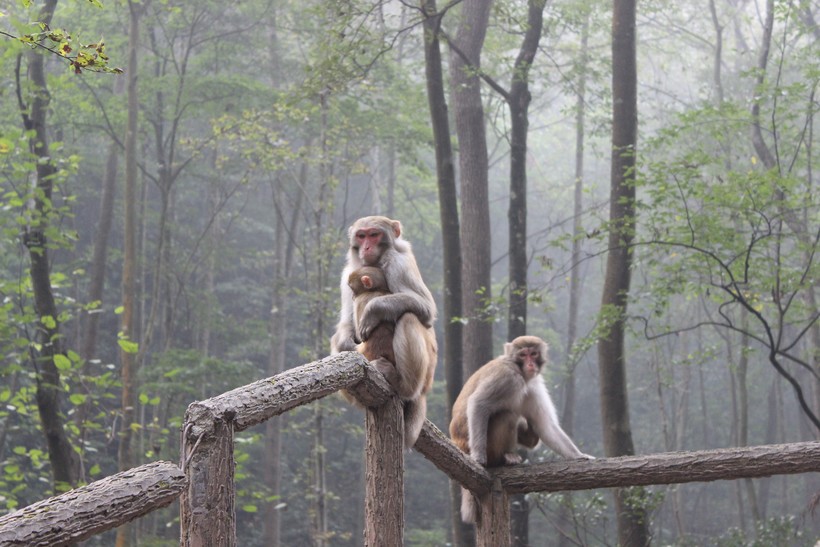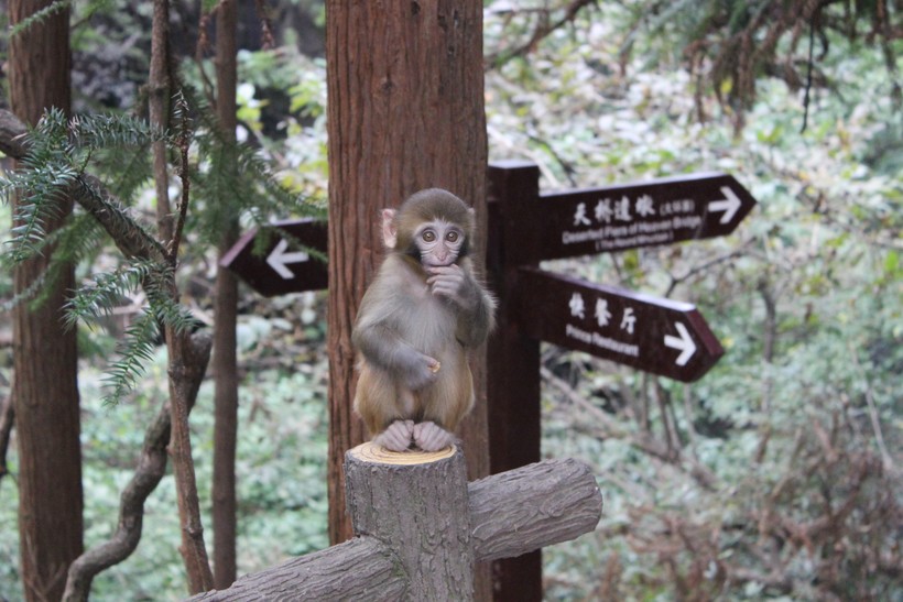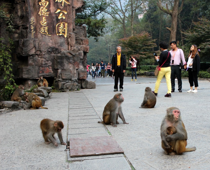 На одной из остановок живут обезьяны, которых мы пытались кормить, но чуть не расстались со всеми нашими вещами. Это была первая встреча с этими, казалось бы, милыми животными в Чжанцзяцзе, и мы тогда еще не знали об их наглости и возможной агрессии.