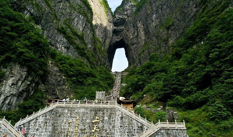 Эта горная дорога тоже является одной из особенностей парка Тяньмэнь. По ней можно проехать на специальном автобусе до арки "Небесные врата". Чтобы пройти к арке, нужно преодолеть нелегкий подъем в 999 ступеней.