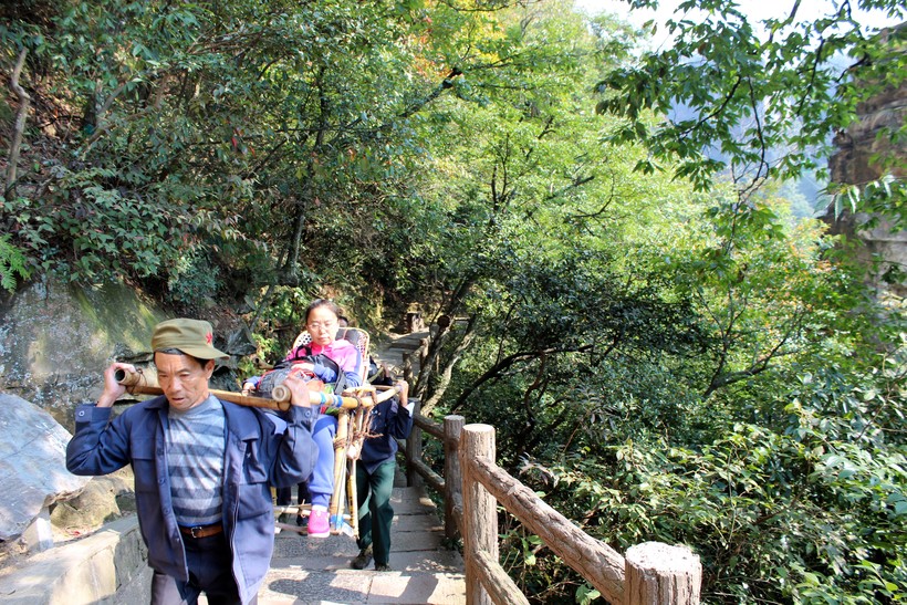 По карте кажется, что расстояние небольшое, но пройти его не легко. Чтобы осмотреть хотя бы часть, придется изрядно вымотаться и вспотеть. Как и на других тропах, здесь можно за дополнительную плату нанять носильщиков, которые помогут преодолеть отрезок пути. Цены у них фиксированные от одной остановки до другой, но можно попробовать торговаться. С одной стороны, это тяжкий труд, который оплачивается подорванным здоровьем, и я бы не хотела вот так использовать людей в качестве "рабов", а с другой стороны, как иначе они заработают на хлеб? Китайцы, видимо, относятся к этому проще, потому как повсеместно пользуются такими услугами, но мне как-то дико.