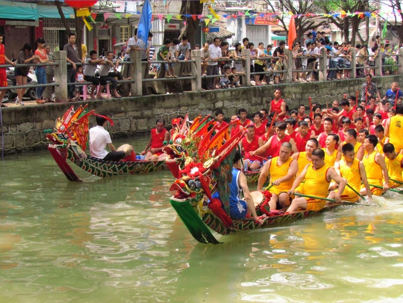 В праздник Дуань-У в городах, где есть водоемы, китайцы устраивают соревнования на традиционных лодках в виде драконов. Количество гребцов зависит от размера лодки, но обычно это от 10 до 20 человек. На носу лодки сидит человек, который барабанным боем задает ритм гребцам.