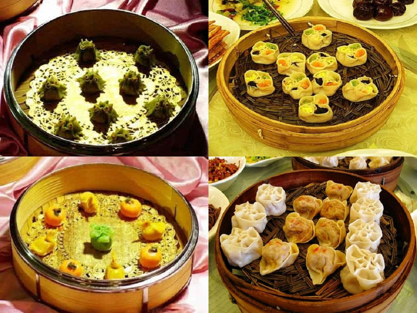 А еще Сиань славится своими пельмешками (饺子jiǎozi), которые здесь готовят с разными начинками (баранина, свинина, говядина, редька, морковь, сельдерей, капуста и т.д). В некоторых заведениях они похожи на произведения искусства, как на фото ниже.