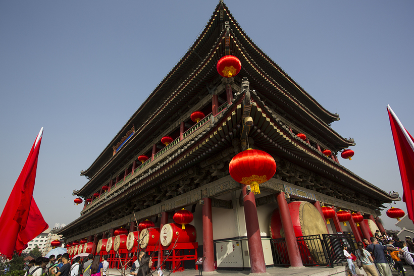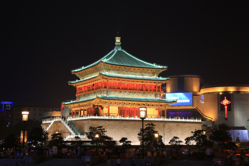 Стоимость билета составляет $8 (54 юаня), студентам – $4 (27 юаней). Стена доступна для посещения с 8:00-22:00, но после 18:00 не на всех участках можно подняться на стену. - Колокольная и барабанная башни. На территории старого (внутреннего) города есть еще два места, которые я бы рекомендовала посетить. Располагаются они совсем рядышком друг от друга. Колокольная башня Сианя 钟楼zhōnglóu (1384 год) и Барабанная башня Сианя 鼓楼 gǔlóu (1380 год). Первая башня получила свое название из-за того, что каждое начала нового дня сопровождалось звоном колоколов на башне.