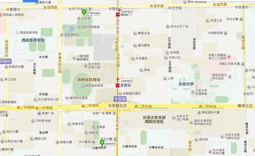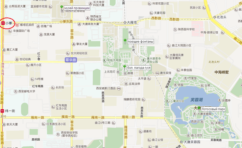 Можно также воспользоваться второй линией метро, необходимо добраться до станции Сяочжай 小寨 xiǎozhài, выход D, затем 1 км прошагать в восточном направлении.