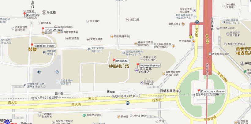- Kai Yuan Shopping Mall (开元商城, kāiyuán shāngchéng). Одно из самых популярных мест для шоппинга с умеренными ценами, хорошим расположением и качественным сервисом. Находится рядом с Колокольной башней (钟楼,zhōnglóu), на картинке ниже можно увидеть, как он выглядит.