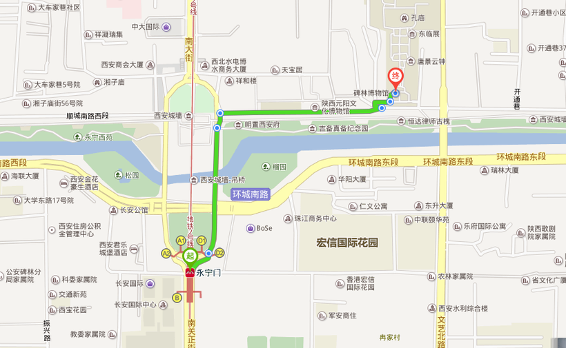 Музей находится в районе Бейлинь, проще всего до него доехать на метро. Рядом в пешей доступности находится станция 永宁门 Yongningmen (красная ветка, линия 2). Как пройти от метро до музей можно увидеть на карте ниже, по времени это займет 10—15 минут.