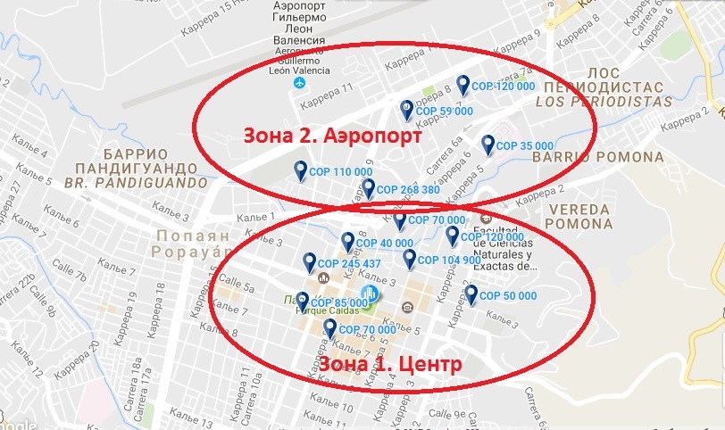 Попаян — небольшой городок, его население не превышает 300 тысяч жителей.К тому же, город очень компактный, поэтому большинство объектов размещения находятся именно в историческом центре, ориентиром которого является центральная площадь Кальдас (Parque Caldas), которая по колумбийской традиции называется громким словом «парк».