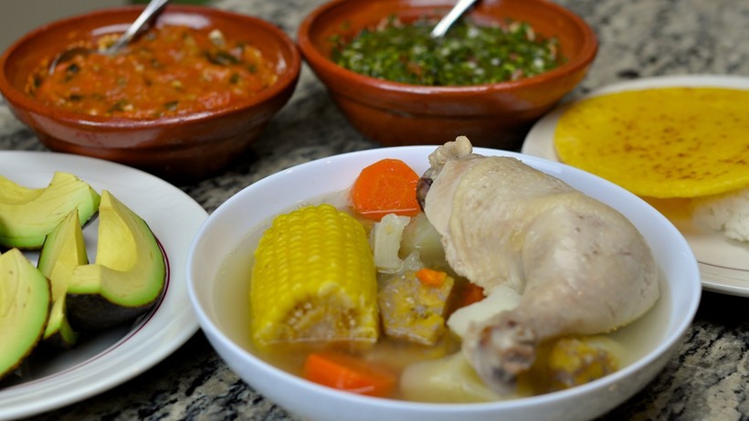 Санкочо (sancocho de gallina) — наваристый густой суп из курицы с овощами, зелеными платанами, кукурузой и юкой — любимым местным корнеплодом. Курицу для супа используют преимущественно ту, которая выросла в натуральных условиях на фермах и фазендах.