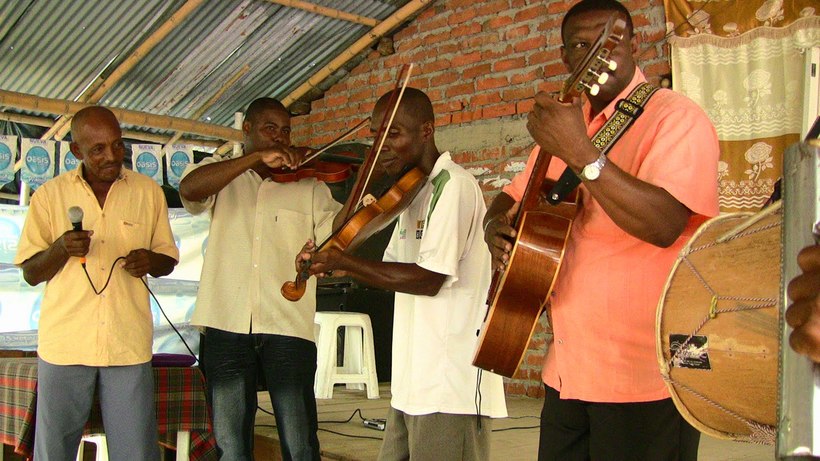 Бамбуко — музыкальный жанр, популярный в регионе, и на праздновании собираются музыканты, которые на гитарах и скрипках играют угодные святой мелодии.