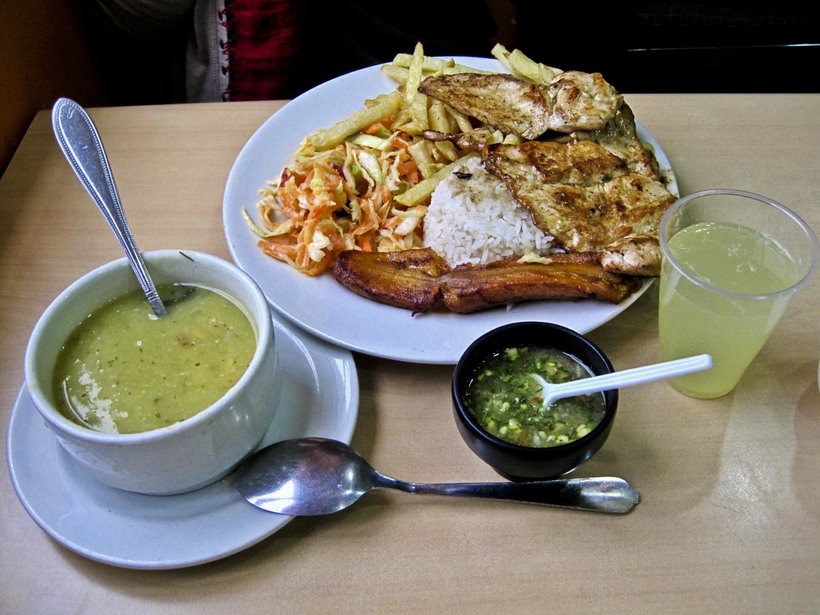Колумбийская кухня не так знаменита, как её «конкуренты» из Мексики или Перу, а, между тем, местные блюда, несмотря на простоту, вкусны и сытны. Для тех, кто экономит, надо запомнить словосочетания «альмуэрсо коррьенте» (almuerzo coriente) или «альмуэрсо эхэкутиво» (almuerzo ejecutivo). И то и другое означает аналог бизнес-ланча с супом, основным блюдом и напитком (2-4 USD).
