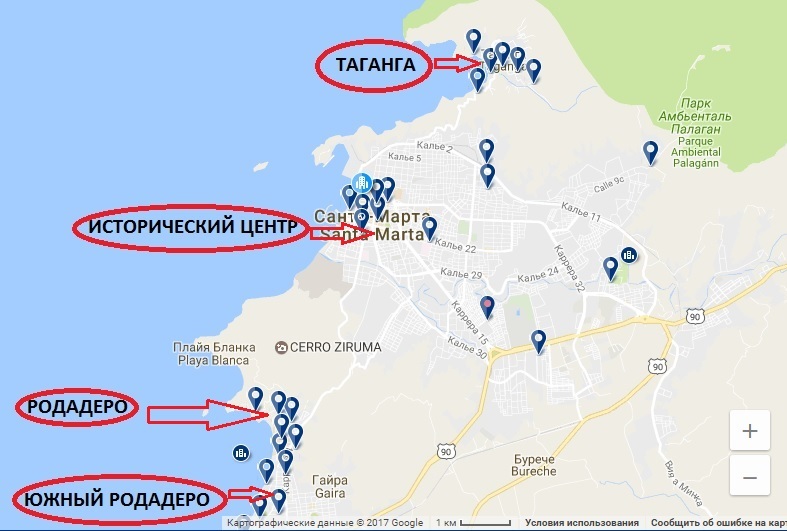 Из аэропорта ходит автобус, поэтому если багажа немного, то за 0,5 USD и 50 минут можно доехать до центра Санта-Марты.