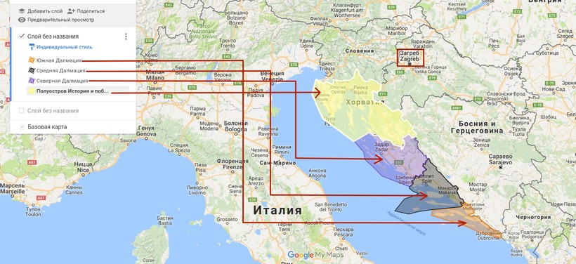 - Средняя Далмация — это Сплит, Башка Вода, Макарска, острова Хвар и Брач. Мелкогалечные пляжи, чистое море, хвойные леса, укромные бухты, парк Корнати, состоящий из сотни островов, национальные парки и лучшие пляжи, которые привлекают тысячи туристов к Макарской Ривьере.