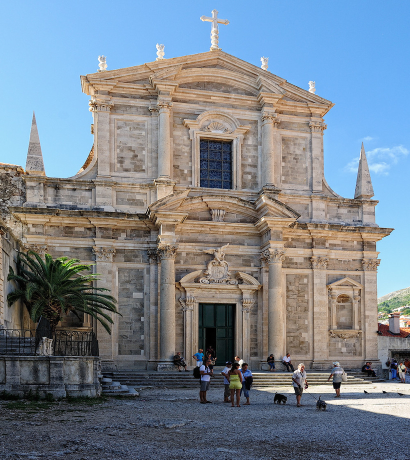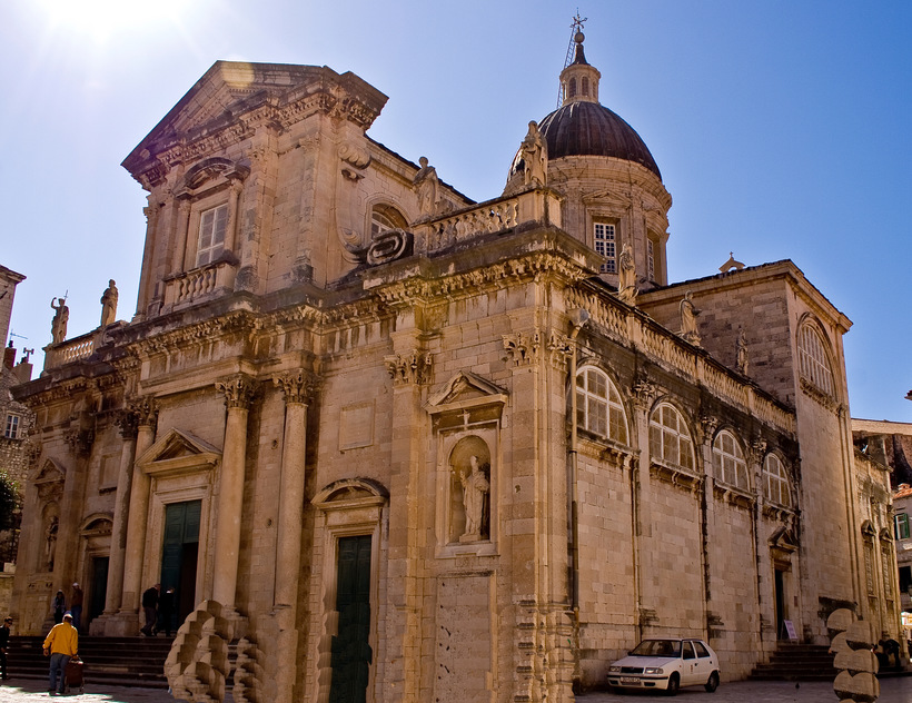 - Кафедральный собор Вознесения Девы Марии. Первая церковь, посвященная Вознесению Девы Марии, появилась в Дубровнике еще в VI веке. После на ее месте было возведено другое здание, разрушенное в 1667 году мощнейшим землетрясением, которое практически уничтожило город. После этого Сенат Дубровника частично восстанавливал старые здания, но по большей части распорядился строить новые. Город застраивался преимущественно итальянскими мастерами, что и обусловило тот барочный вид, которым поражает туристов Дубровник. Та же судьба постигла и кафедральный собор: после 30 лет строительства миру явилось большое (ну… по местным меркам) величественное здание, полное света и пространства. Собор сильно пострадал в 1991 году во время югославского конфликта, но был почти полностью восстановлен – некоторые работы ведутся до сих пор. В соборе находится полиптих кисти Тициана, расположенный в главной алтарной части. Также вы можете посетить сокровищницу при храме, где хранится множество реликвий: мощи святого Власия, частичка креста, на котором был распят Христос, множество удивительных по красоте предметов культа, а также копия картины Рафаэля «Мадонна с Младенцем и маленьким Иоанном Крестителем», принадлежащая кисти ученика его школы. Внимание! За вход в сокровищницу взимается дополнительная плата – около 5 EUR. Собор расположен на той же площади Ложа, что и церковь Святого Власия, и находится прямо за ней.