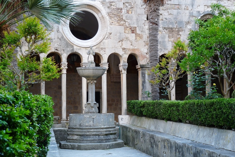- Францисканский монастырь. Был основан в 1317 году и, по всей видимости, являл собой прекрасный образец готики, на что указывает сохранившийся готический портал, выходящий на Страдун, однако также не пережил страшного землетрясения 1667 года. Сам храм был восстановлен в барочном стиле. По атмосфере он лично мне понравился больше всего. Монастырь расположен у ворот Пиле, напротив Большого фонтана Онофрио.