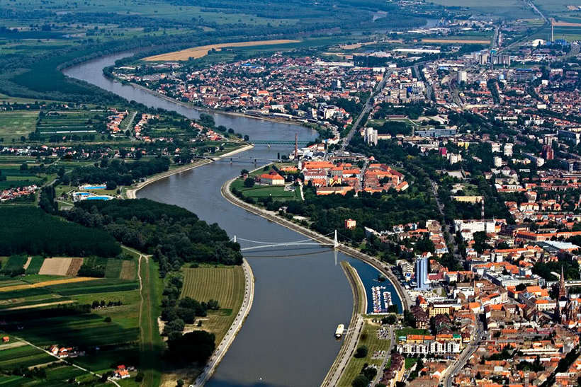 Сам Осиек расположен на берегу реки Драва, вдоль которой проложен променад.