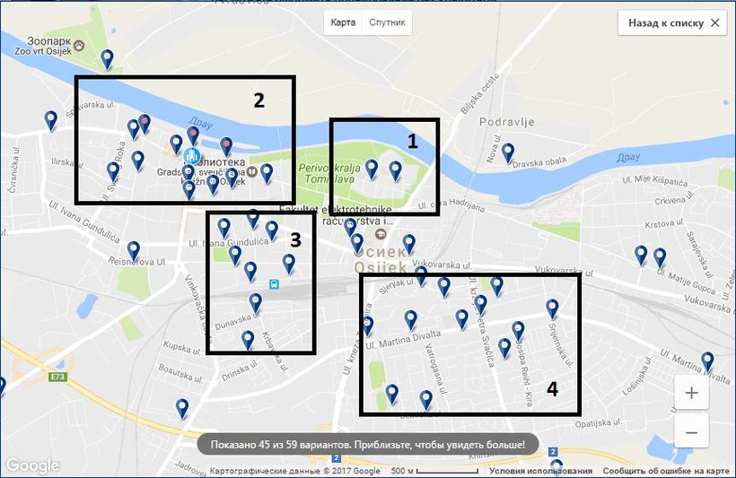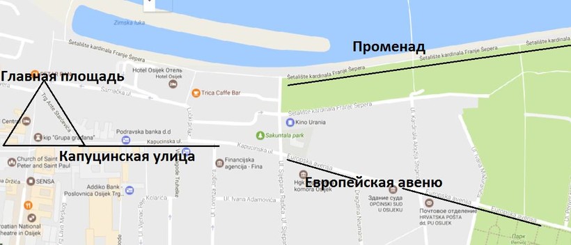 Хотя в Осиеке не так много вариантов размещения, выбирать из них всё равно нелегко. Я советую в первую очередь обратить внимание на их локации на карте города: