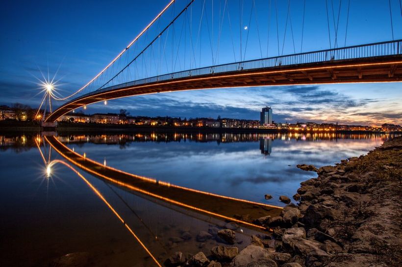 Драва — граница города, поэтому с одной стороны реки возвышаются здания самых разных архитектурных стилей, а с другой раскинулись леса и поля, а также сельские населенные пункты.