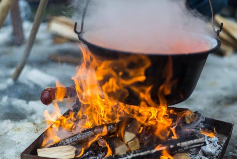 Это блюдо готовиться на открытом огне из картофеля и нескольких видов мяса и представляет собой нечто среднее между супом и жаркИм.