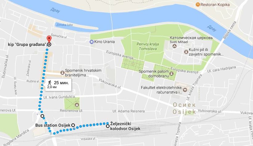 Как добраться от вокзала до центра Осиека